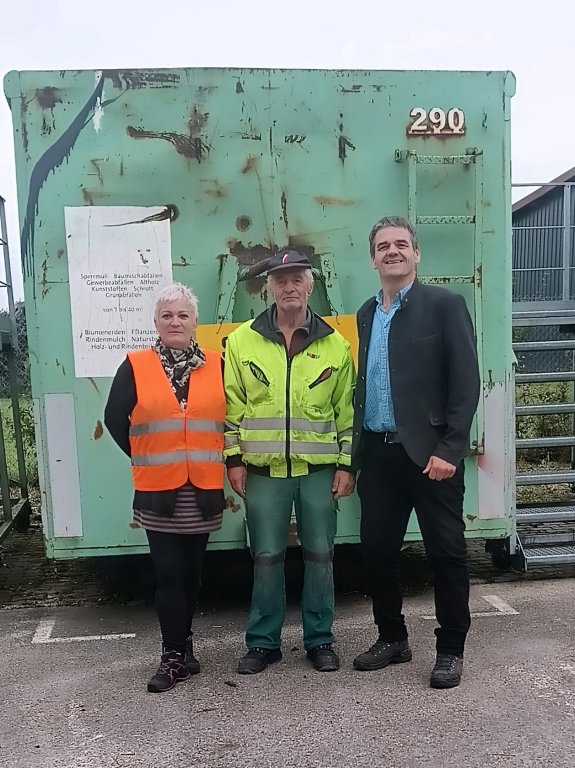 Bürgermeister Michael Krumbucher (im Bild rechts) und Christine Gleichauf (im Bild links) begrüßten Herrn Niedermayer offiziell am Wertstoffhof. Mit seiner Unterstützung ist das Team wieder vollständig und gewährleistet den reibungslosen Ablauf der Abfallentsorgung in der Gemeinde.